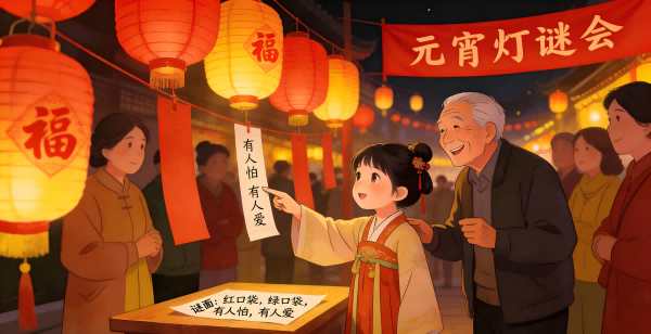Ar oíche Fhéile Lantern na Síne, maisítear sráideanna le lóchrainn ildaite, go minic le tomhaiseanna scríofa orthu. Itheann daoine liathróidí ríse milis ar a dtugtar tangyuan, féachann siad ar dhamhsaí dragan agus leon, agus cuireann siad tinte ealaíne amach.