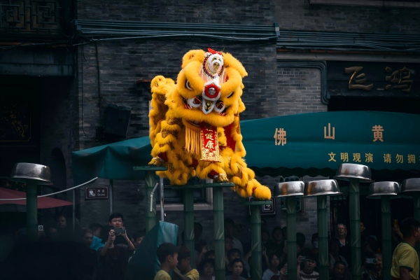 Is gnách go mbreathnaíonn muintir na Síne ar an leon mar shiombail de chrógacht agus de neart agus creideann siad gur féidir leis an chuma atá air an olc a thiomáint ar shiúl agus daoine agus a mbeostoc a chosaint. Adhradh muintir na Síne an dragan agus féachann siad air mar shiombail den dea-ádh.