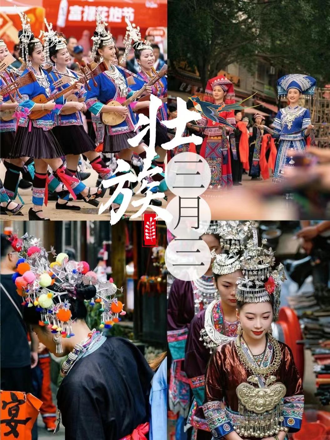 Is féile thraidisiúnta thábhachtach í an tréimhse seo ar a dtugtar “Sanyuesan” (an tríú lá den tríú mí gealaí), tráth a dtugann daoine onóir dá sinsir, guí ar son dea-fhortún, agus nuair a cheiliúrann siad aontacht i measc mhuintir Zhuang. Is féidir bunús na féile a rianú siar go dtí finscéalta ársa.