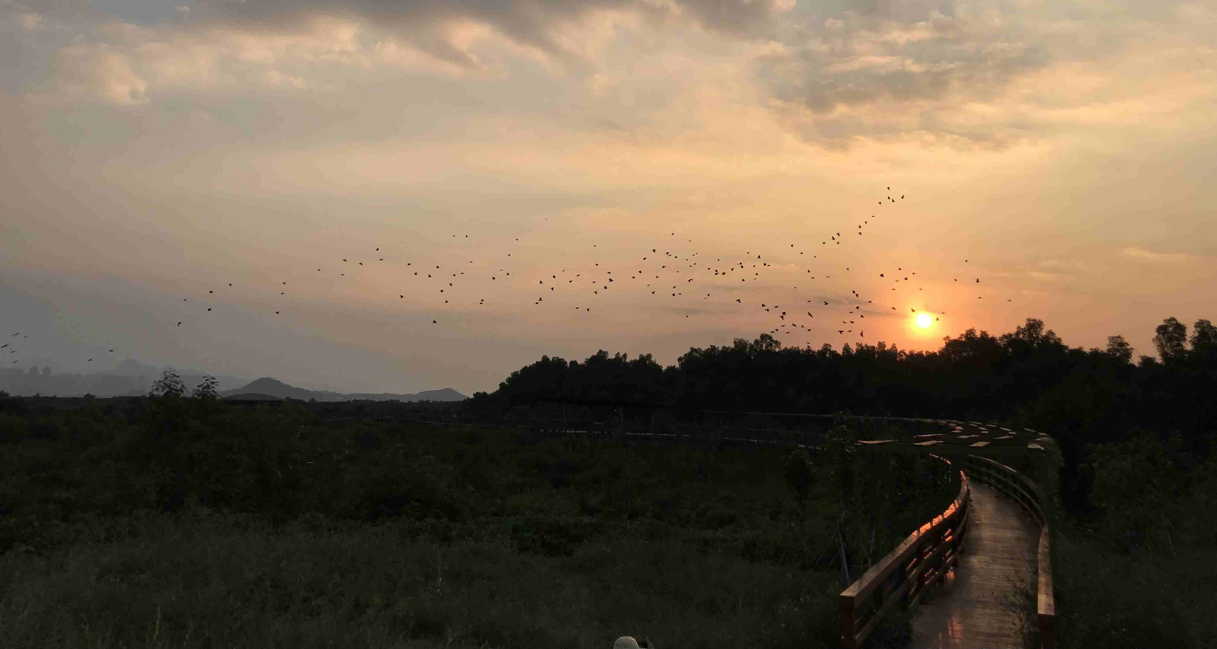 Ag nascadh Shenzhen agus an fharraige le costline 15 ciliméadar, tá daoine in ann an taobh eile, Hong Cong, a fheiceáil. Is é an t-am nádúrtha is taitneamhaí do chónaitheoirí Shenzhen siúl anseo ag breacadh an lae nó breacadh an lae, ag breathnú ar éin, agus ag amharc ar scáthanna sléibhe Hong Cong trasna an uisce.