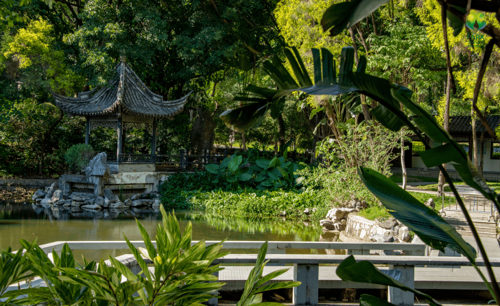 Tugann sé beagnach céad píosa ealaíne gairdín fíorálainn le chéile ar fud an domhain, le radharc álainn ar gach cas, cosúil le músaem gairdín, a chumasc go sciliúil tírdhreachtú nádúrtha le hailtireacht de dhéantús an duine, ag taispeáint doimhneacht gairdíní an Oirthir agus stíleanna na dtíortha éagsúla.